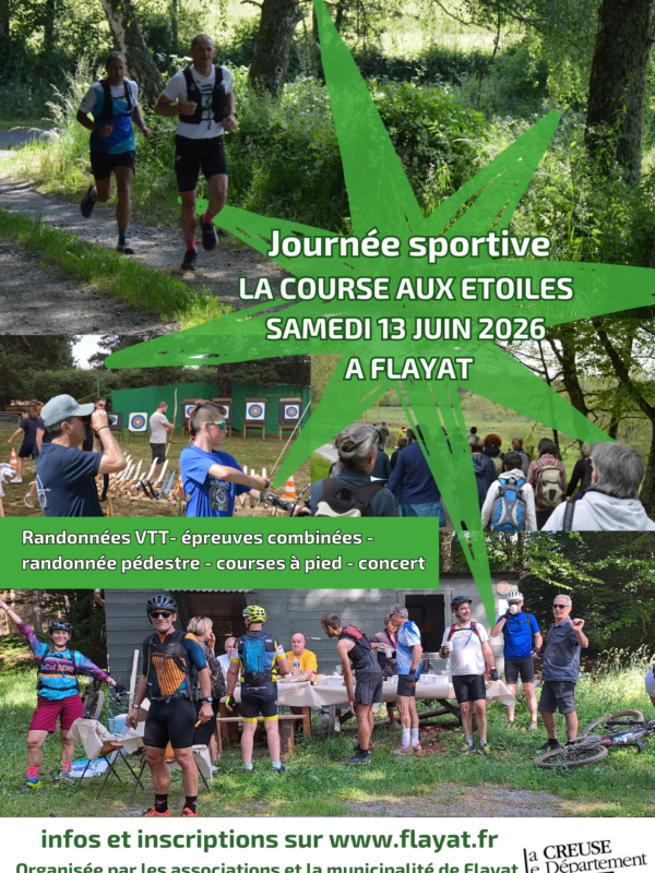 Circuit de 10.35 kilomètres , départ à 14 heures du stade de Flayat. Inscription sur Adéorun et sur place. Renseignements auprès de Nelly Villetelle au 06.71.19.02.39