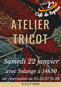 Tu ne sais pas tricoter mais tu es curieux.se d'apprendre ? Tu es pro du tricot et tu veux partager ton savoir faire ? Viens au Café de l'Espace et tricoter ! Solange t'accompagnera tout le long de l'atelier. Pense à réserver auprès de Pauline au 05 55 67 51 38 ou sur... Voir l'article